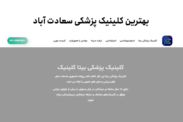در ادامه قصد داریم بهترین کلینیک پزشکی سعادت آباد در تهران را به شما عزیزان معرفی کنیم تا بتوانید به جهت انجام خدمات زیبایی و گرفتن بهترین نتیجه به آن مراجعه کنید. کلینیک بیتا در سعادت آباد با وجود کادر پزشکی فعال و منحصر به فرد بهترین خدمات را با بالاترین کیفیت به شما متقاضیان عزیز ارائه میکنند. کلینیک پزشکی بیتا زیر نظر پزشک متخصص عملهای زیبایی خانم دکتر پروانه منصوری خدمات ویژهای را در اختیار شما عزیزان قرار میدهد.